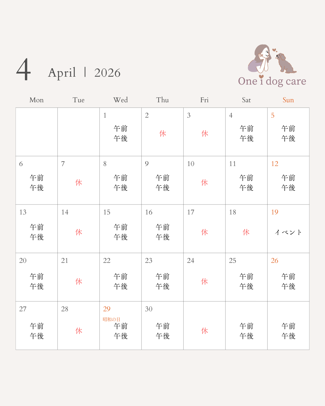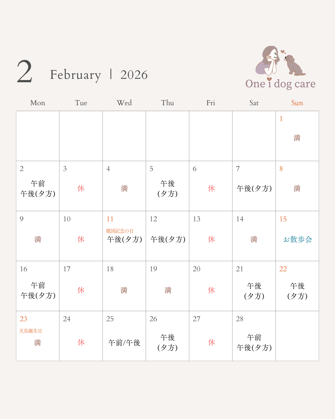 スケジュール配信(レッスン中の方向け) 投稿日 2026年1月27日 著者 aiai カテゴリー お知らせ こんにちは!日本ドッグビヘイビアリスト協会認定ドッグトレーナー田中です♪2月~4月までのスケジュール配信です。(レッスン中の方用)ご予約は公式ラインにお送りください。 ドッグトレーニング パックウォーク 噛み犬 子犬のしつけ 山梨県 犬のしつけ 犬の吠え 犬の問題行動 社会化トレーニング